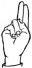 На ћирилици написано ЈУГОМИР МЕЧАНИН састоји се из 14 слова [?]. Исписано ћириличном једноручном азбуком за глувонеме: